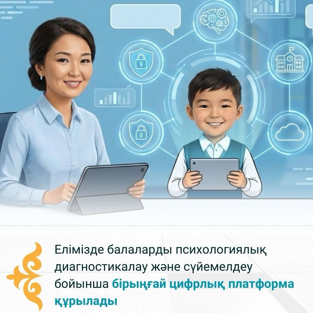Елімізде балаларды психологиялық диагностикалау және сүйемелдеу бойынша бірыңғай цифрлық платформа құрылады📀 «Қазақстан балалары» 2026–2030 жылдарға арналған тұжырымдамасын іске асыру аясында елімізде балаларды психологиялық диагностикалау және сүйемелдеу бойынша бірыңғай цифрлық платформа құрылады. Жоба қауіп-қатерлерді ерте анықтауға, психологиялық көмектің қолжетімділігін арттыруға және баланы қорғау жүйесінде педагог-психологтардың рөлін күшейтуге бағытталған.