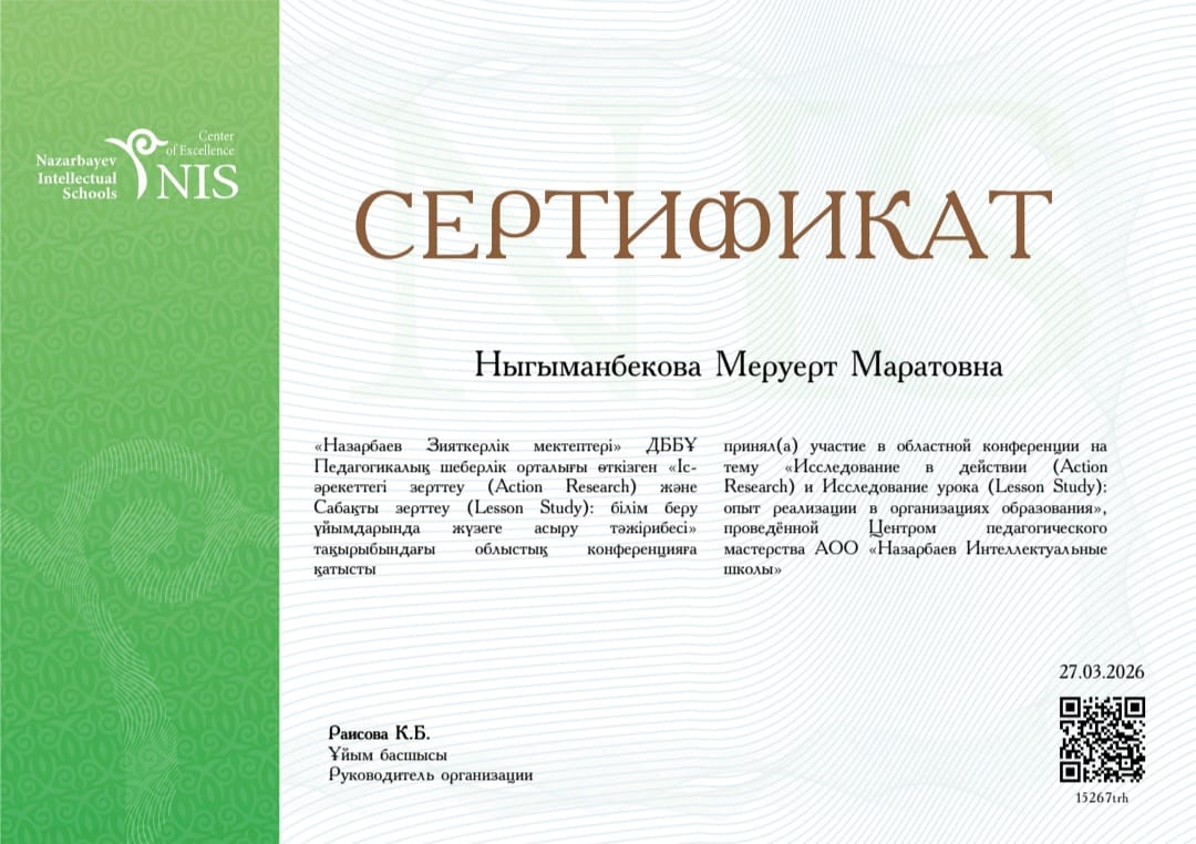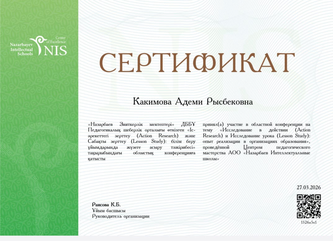 “Іс-әрекеттегі зерттеу ( Action Research )және Сабақты зерттеу (Lesson Study): білім беру ұйымдарында жүзеге асыру тәжірибесі “ VIII облыстық тәжірибелік конференциясы