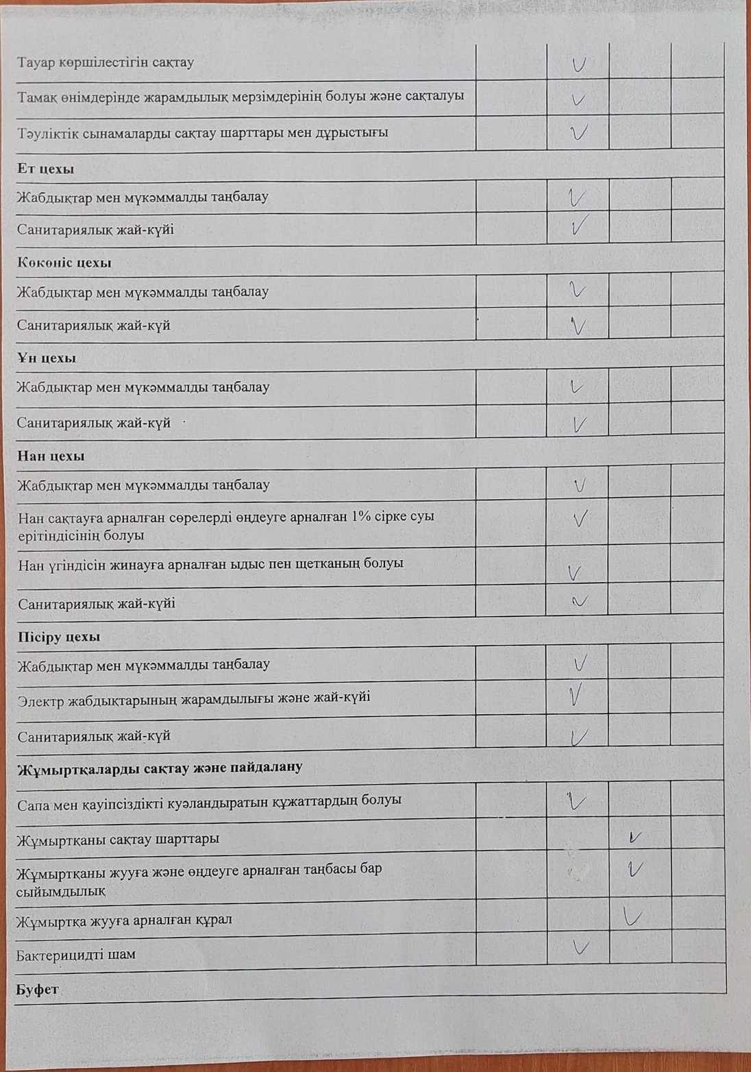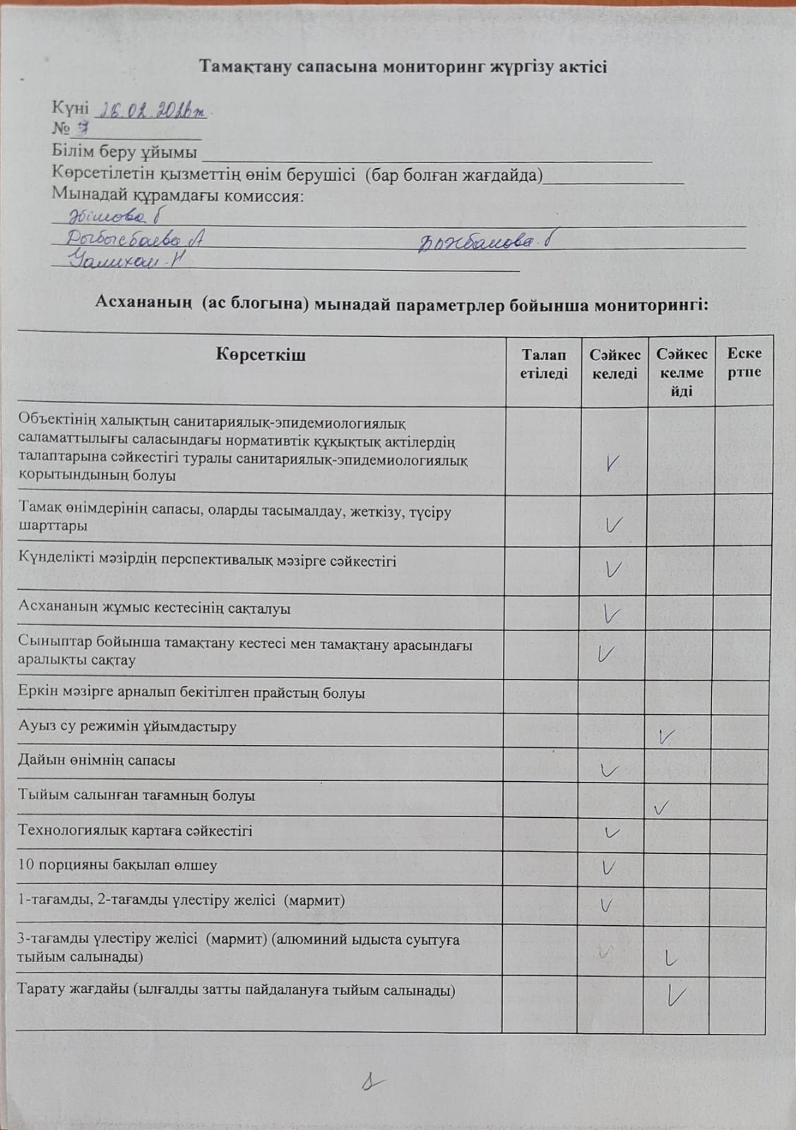 Тамақтану сапасына мониторинг жүргізу актісі