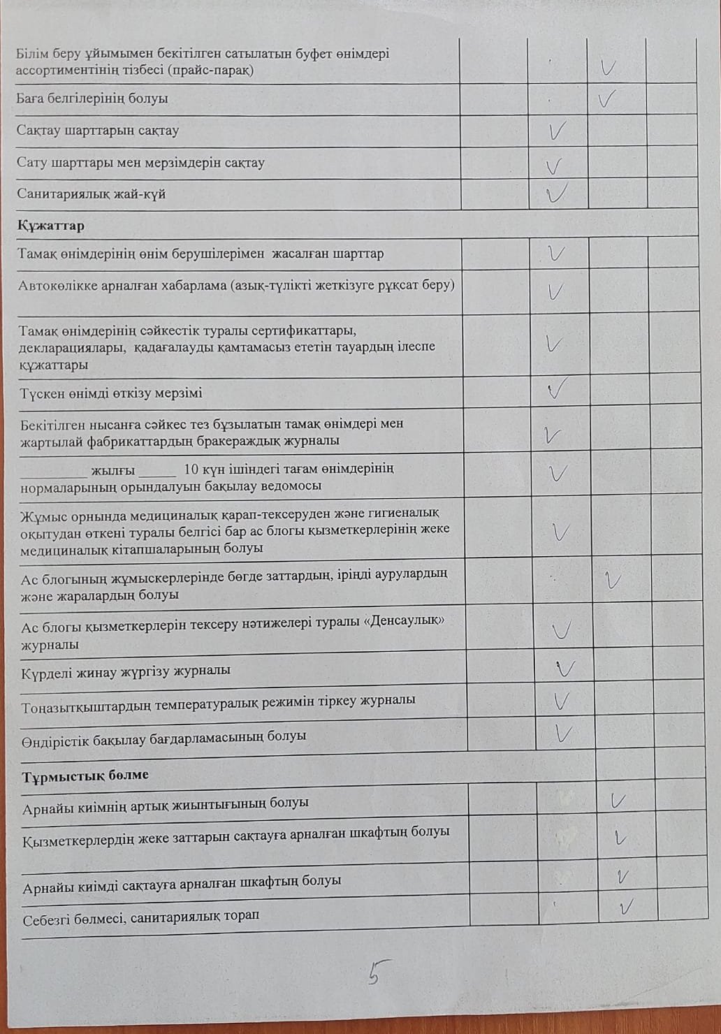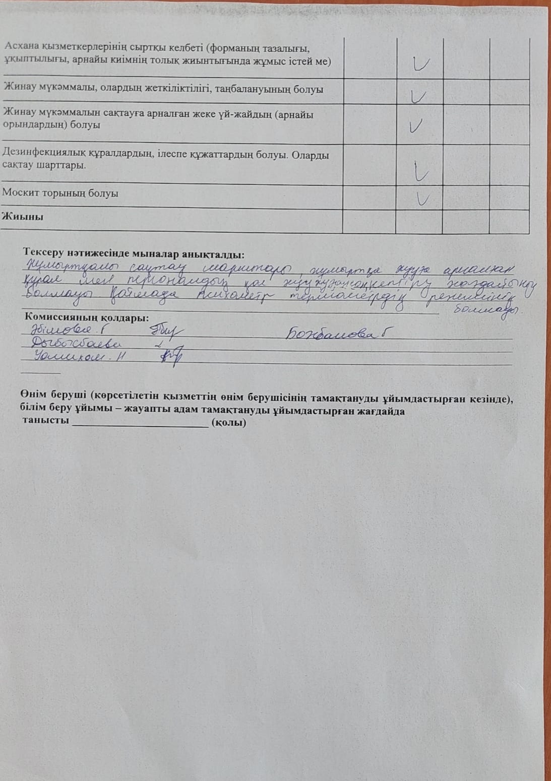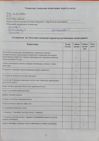 » Тамақтану сапасына мониторинг жүргізу актісі