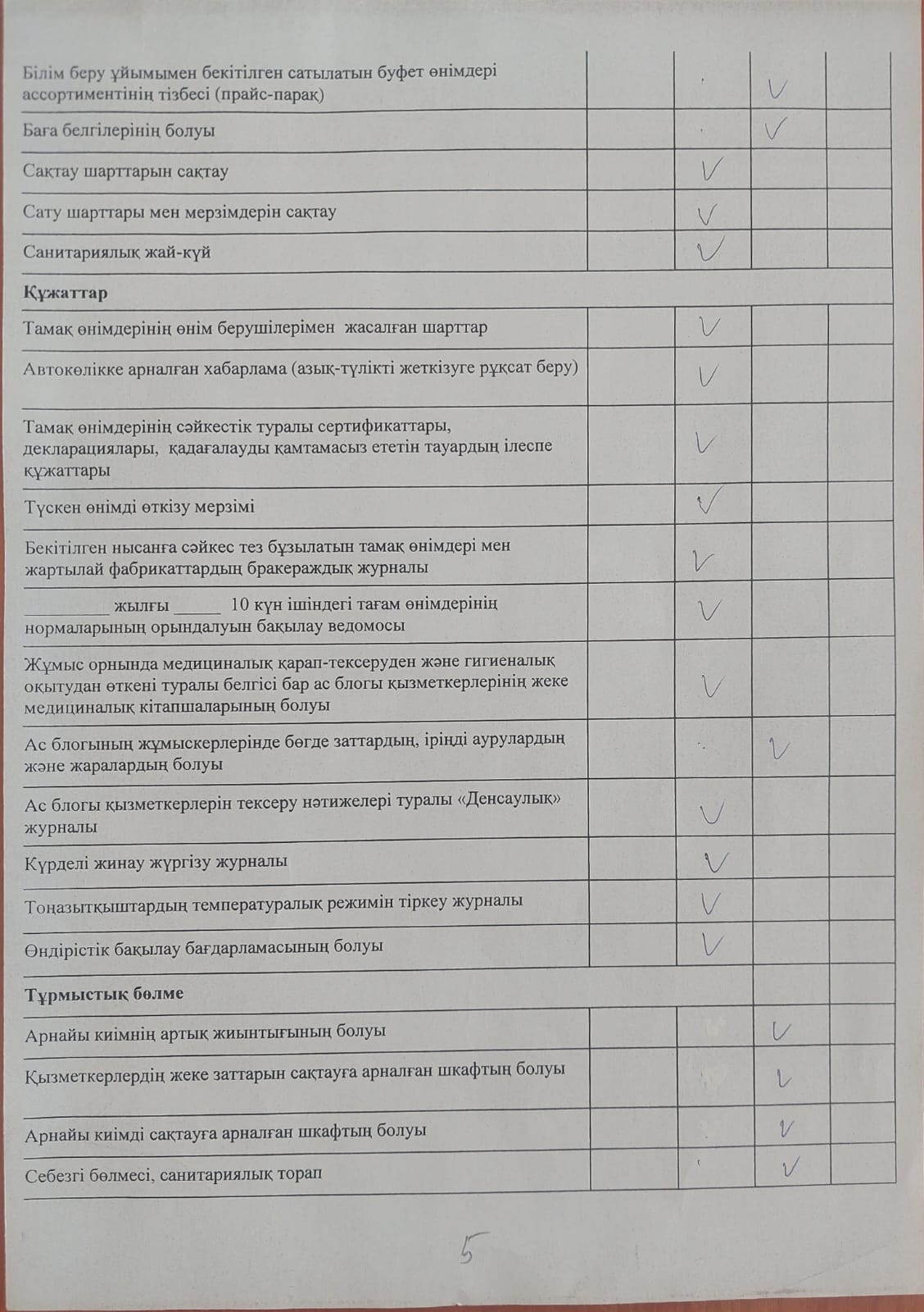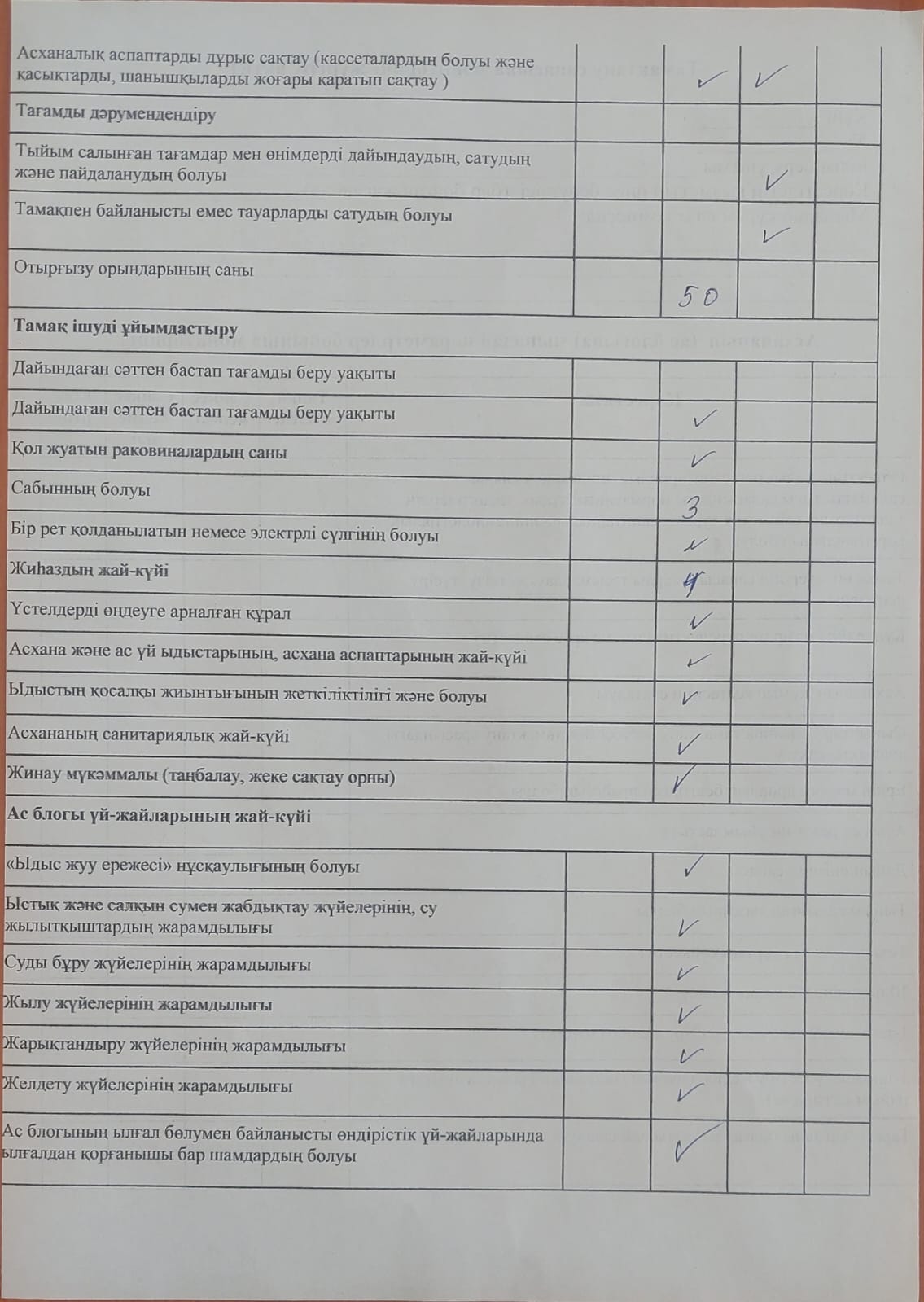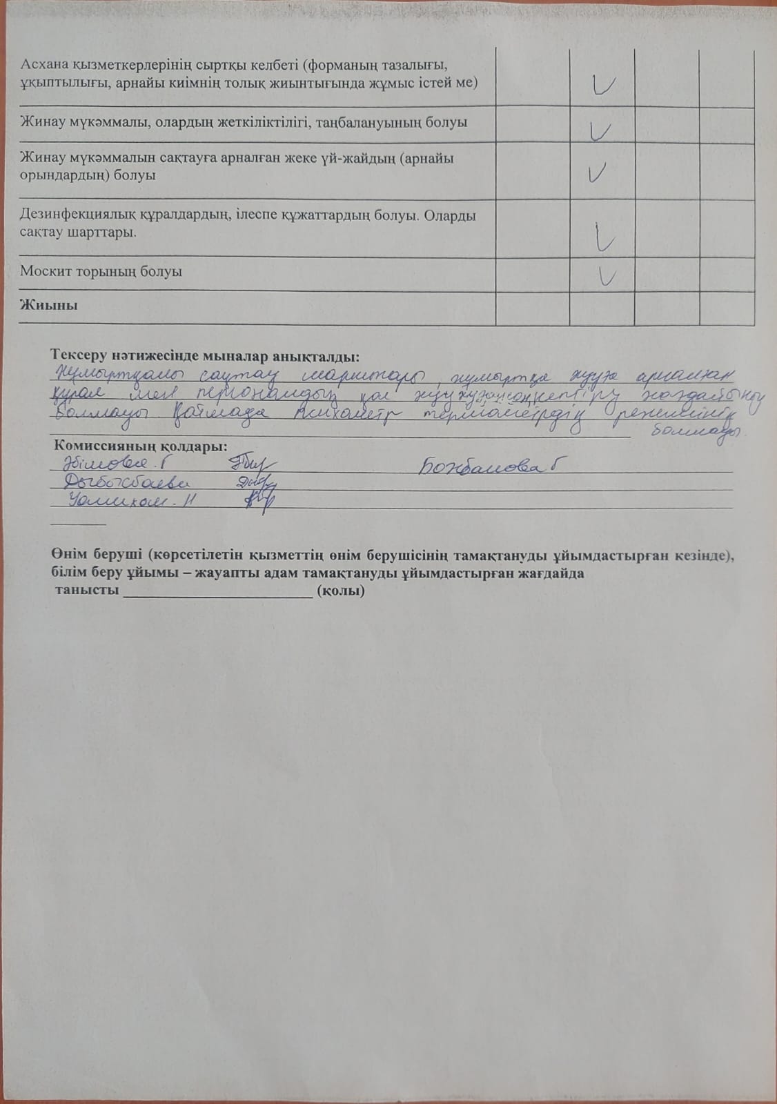 » Тамақтану сапасына мониторинг актісі