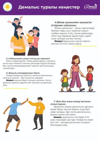 "Өркен" балалардың әлеуетін арттыру ұлттық ғылыми - практикалық институты "Демалыс туралы кеңестері" тақырыбында