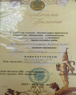 🔹 Тлек Айшанұр (4-сынып) – қазақ тілі мен әдебиеті пәнінен ІІІ орын